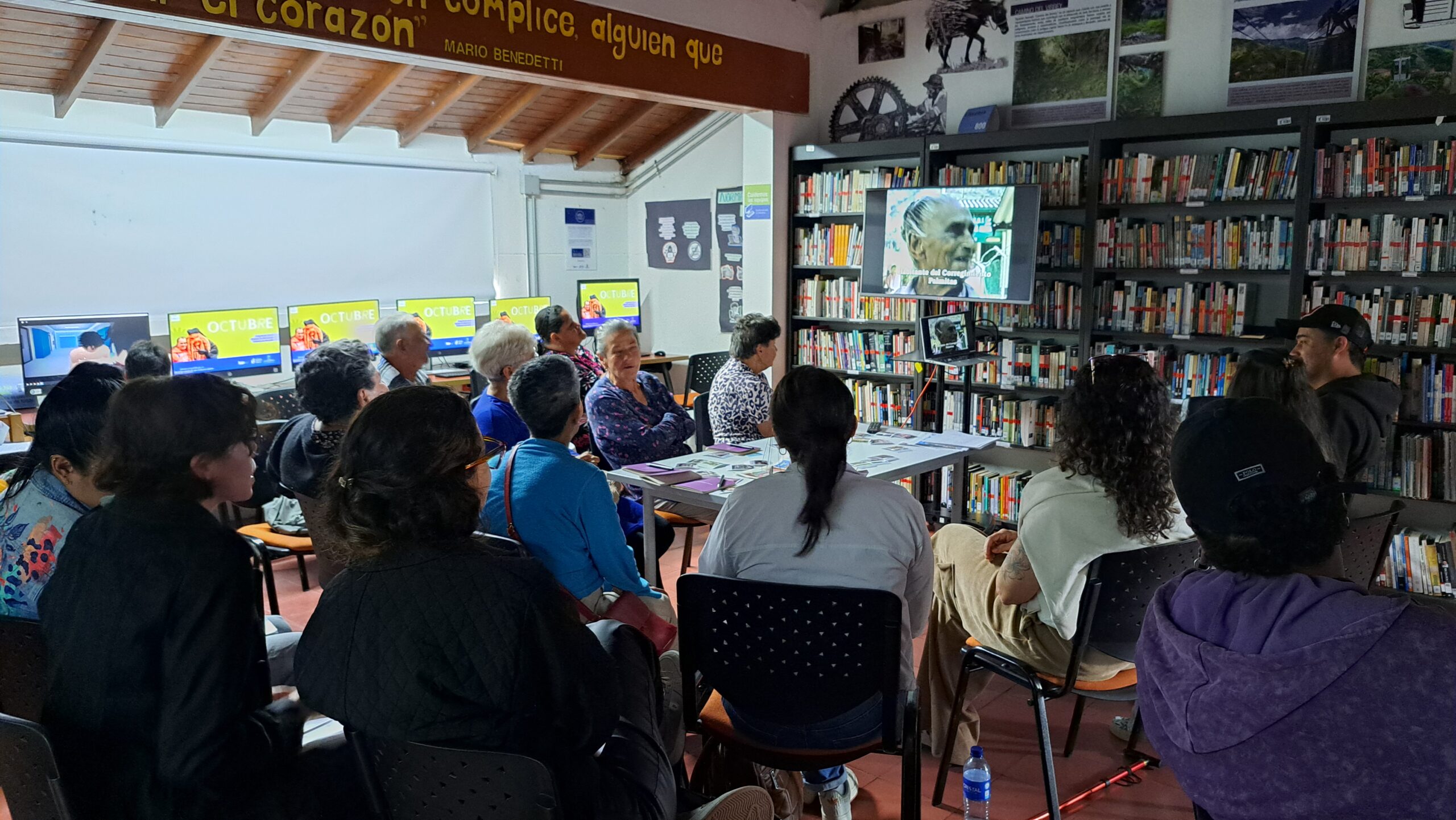 Se realizaron dos encuentros: uno en San Cristóbal (15 de septiembre) y otro en San Sebastián de Palmitas (6 de octubre). Estos espacios se hicieron en torno a las imágenes archivadas, fueron encuentros emotivos y de reflexión asociada a los procesos organizativos, la conversión agroecológica de la producción y los liderazgos de hombres y mujeres que persistieron y persisten en la vida, la economía y la cultura campesina. Además de ayudar a conservar la memoria, el proyecto se vinculó con las reflexiones asociadas a la participación campesina en el proceso de revisión del Plan de Ordenamiento Territorial de Medellín, y cómo se debe proteger y fortalecer la figura de Distrito Rural Campesino existente en el Plan.