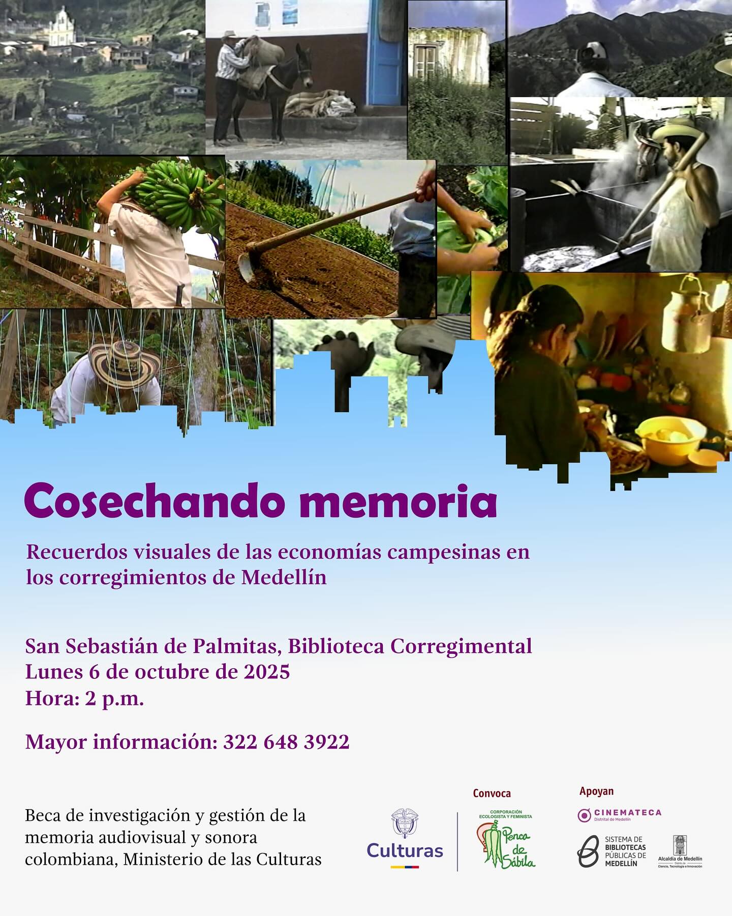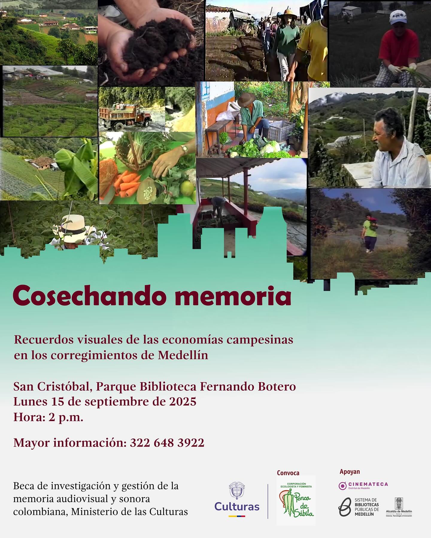 Entre julio y noviembre de 2025, el proyecto Cosechando Memoria recuperó videos de archivo de las actividades de la Corporación Penca de Sábila en tres corregimientos de Medellín: San Cristóbal, San Sebastián de Palmitas, y San Antonio de Prado; con el apoyo de una beca gestión del patrimonio audiovisual del Ministerio de las Culturas, a cargo de la realizadora de Cine y Televisión Maria Antonia Vélez.